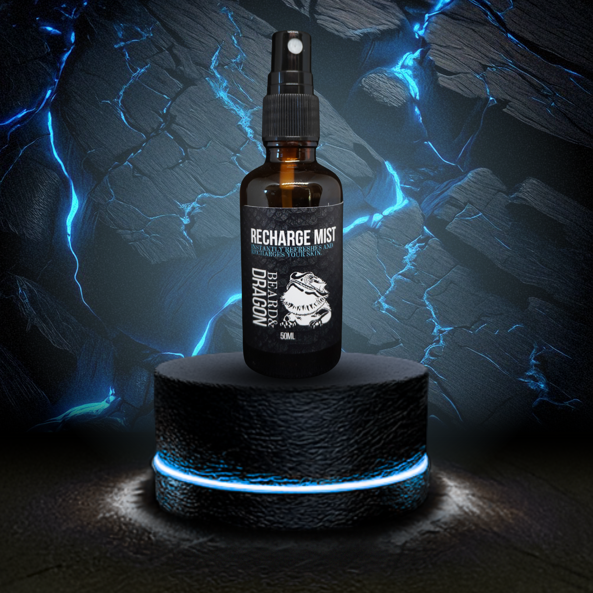 - Hold 15-20cm from your face and mist evenly over your face, neck, and beard.